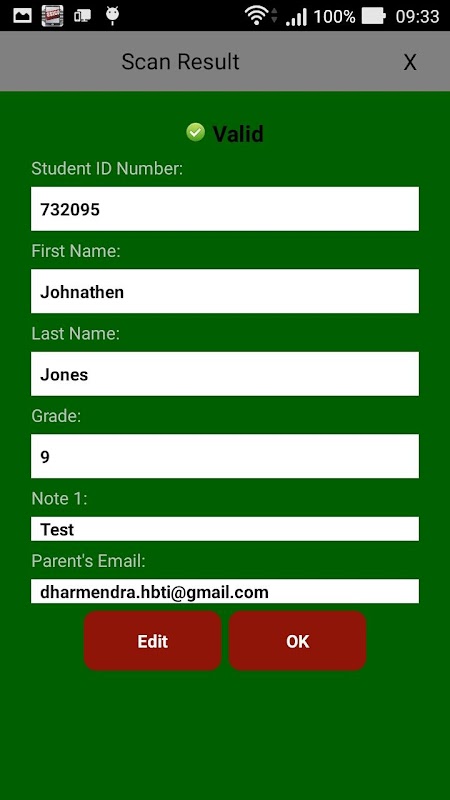 ProScanner 2.0 es una aplicación basada en un teléfono inteligente que puede escanear las tarjetas de identificación de los estudiantes para rastrear sus actividades diarias, proporcionarles recompensas y consecuencias. La tarjeta de identificación que tiene su estudiante debe tener un código de barras (por ejemplo, Code_39, Code_128, Ean_8, QR_ Code, etc.). Cuando termine de escanear, simplemente haga clic en un botón en su cuenta de administrador en drssica.com, podrá descargar todos los datos (hora en que el alumno fue escaneado, quién lo escaneó, etc.) en una hoja de cálculo de Excel (formato CSV). Por ejemplo, supongamos que el miembro del personal de detención del almuerzo escanea a todos los estudiantes que sirvieron la detención durante el almuerzo. Al final de la detención del almuerzo, el administrador puede descargar una hoja de cálculo CSV con quién estaba allí, a qué hora se escaneó la tarjeta de identificación y quién escaneó la tarjeta de identificación del estudiante. Mantener registros precisos es simple con ProScanner. Cada usuario (miembro del personal) recibe un nombre de usuario y contraseña. Usted determina cuántos usuarios necesita; puede variar de 1 a más de 1,000 usuarios. ¿Pueden los estudiantes usar esta aplicación? No, porque no tendrán credenciales. ¿Cuánto cuesta la aplicación? Es gratis. Descargue la aplicación ahora para que pueda usar esta aplicación en su dispositivo Android o en su tableta. ¿Qué tal si el estudiante no tiene una tarjeta de identificación? Nuestra aplicación tiene una "Búsqueda Estudiantil" que permite al miembro del personal buscar por nombre, apellido o número de identificación. Tenga en cuenta que cuando se escanea una ID, la pantalla aparecerá en Rojo, Verde, Marrón o Amarillo dependiendo del color de la consecuencia asignado por usted (el administrador). Por ejemplo, si está usando la aplicación para que los estudiantes salgan del campus para almorzar, cuando se escanea la tarjeta de identificación del estudiante aparecerá Verde (lo que permite que el estudiante salga del campus), Rojo (el estudiante no tiene el privilegio de fuera del campus), o Brown (el estudiante tiene detención durante el almuerzo o la escuela de los sábados). Tarda literalmente entre un segundo y dos segundos para escanear cada tarjeta de identificación. Una escuela secundaria en Visalia, CA escanea entre 400 y 500 estudiantes en aproximadamente 6 a 7 minutos con 8 miembros del personal. Este programa está hecho para mantener a los estudiantes responsables de sus acciones y para mantener su campus seguro.