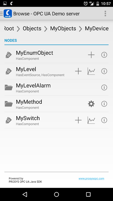 Prosys cliente OPC UA se construye a partir de la prosys OPC UA SDK Java, que apoya el desarrollo de aplicaciones OPC UA para Android.