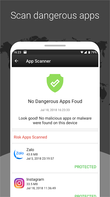 Escanear y monitorear todo el software en su teléfono. Desactiva y le avisa de software que puede espiar, rastrear y robar datos