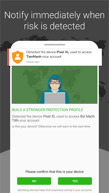Proteger sus cuentas de Facebook, Gmail, Instagram, Twitter. Detectar y prevenir el acceso no autorizado a robar datos de sus cuentas en línea. Seguimiento de la actividad de registro ayuda a detectar el acceso sospechoso y ofrece soluciones para proteger su cuenta en línea.