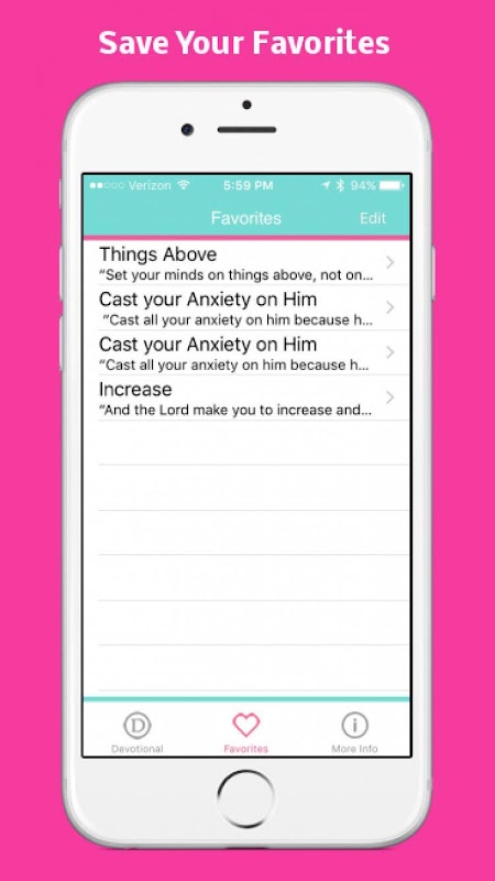 Proverbs 31 Devotionals is a spin-off version of our Christian-themed app inspired by the book of Proverbs chapter 31. The app's main function is to feature Daily Devotional content preceded by a daily bible verse. This combination of scripture and commentary allows for deeper meditation of God's word.