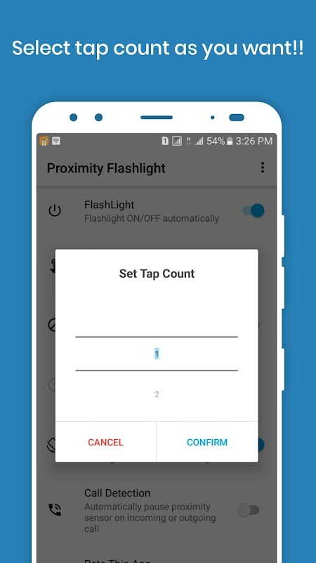 Este modo detecta la cual es llamada entrante o saliente. Después de detectar una llamada, ayudará a pausar el sensor de proximidad (modo de onda) para evitar que la linterna se encienda por accidente.