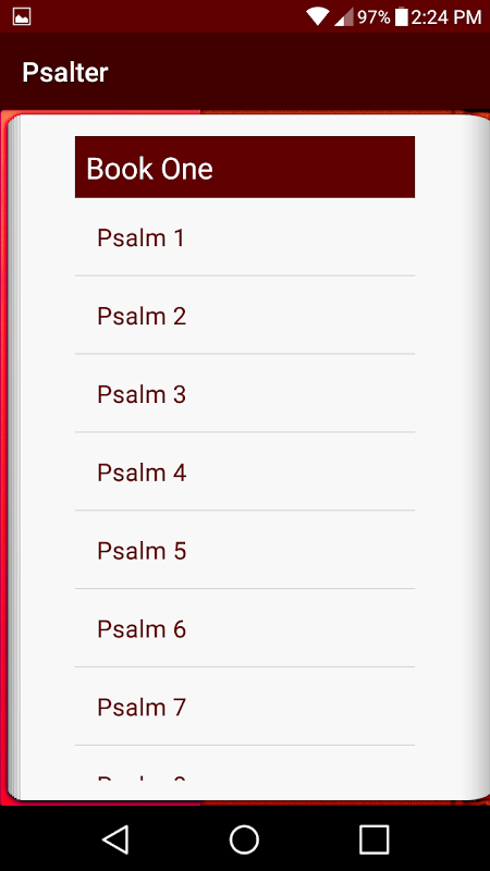 Esta aplicación se basa en el capítulo del Salterio en el Libro de Oración Común (Iglesia Episcopal) de 1979 que comienza en la página 581. El propósito de la aplicación es proporcionar un fácil acceso a 150 salmos disponibles mediante una interfaz fácil de usar. Espero que usted y su familia encuentren esta aplicación espiritualmente enriquecedora para sus almas y la disfruten tanto como yo lo hago con mi familia.