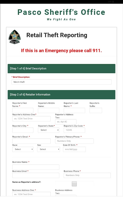 This app can be used by retailers in Pasco County to report incidents. This is not an alternative to 911, In case of emergency, please call 911 immediately.