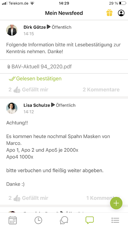 Mi suministro de noticias: lo mismo se aplica, por supuesto, al suministro de noticias. Simplemente informe a sus colegas de la farmacia escribiendo un artículo en el suministro de noticias y publíquelo en la pizarra inteligente de la farmacia. Leer confirmación requerida? ¡No hay problema con la aplicación PULSE Team!