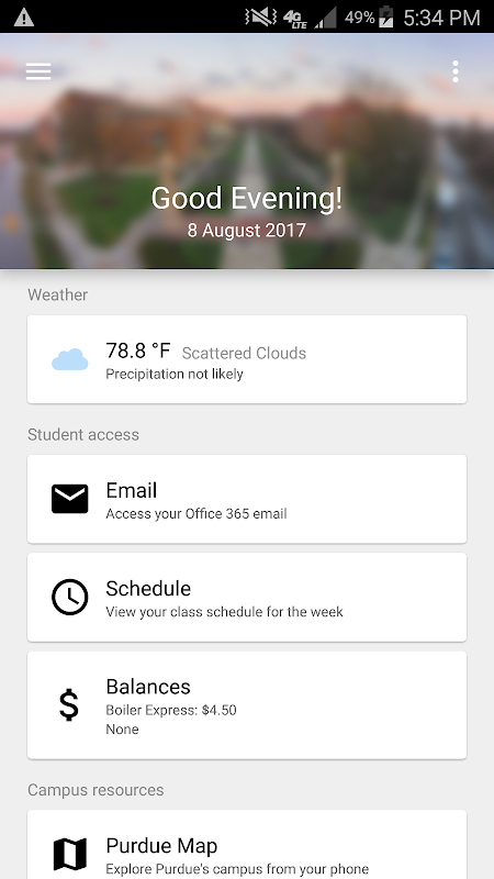 La aplicación oficial no oficial de Purdue (porque éste realmente funciona)
