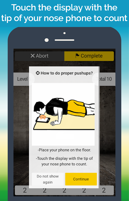 Serbest antrenman modu ile rekor denemesi yapabilirsiniz. Daha önce çekmiş olduğunuz şınav sayınızı geçtiğiniz an uygulama size haber verir.