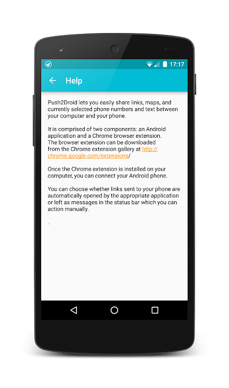 1. Install the Push2Droid Android application and complete the simple set-up process;