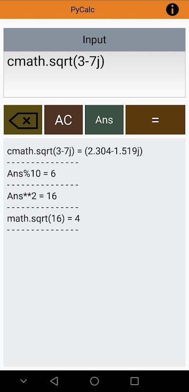 Esta aplicación está diseñada para que los cálculos se puedan realizar utilizando métodos de Python. Se pueden utilizar módulos integrados como matemáticas, cmath, estadísticas, etc. para realizar cálculos. Esta aplicación también le ayudará a aprender a programar en Python.