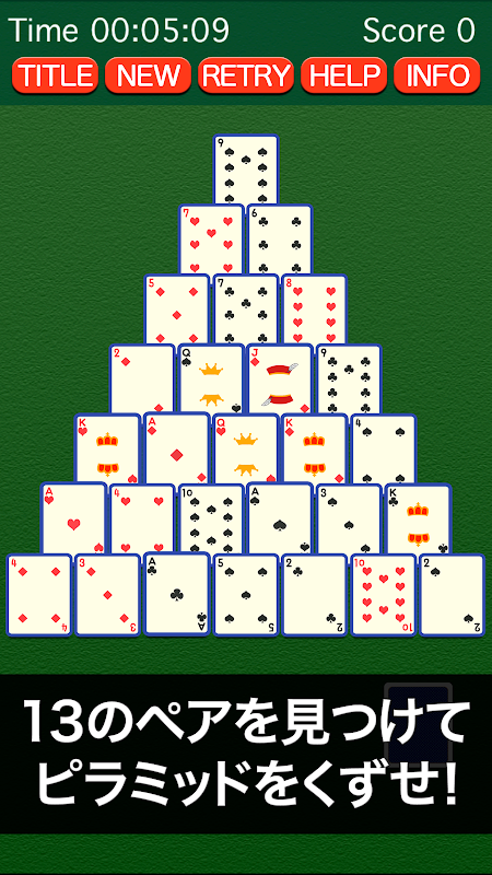 Fácil juego de cartas es el "Pyramid Solitaire"!Seleccione la tarjeta de la pareja a ser 13 más, se Kuzuso la pirámide!