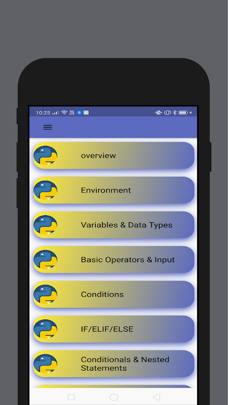 Si usted es un desarrollador nuevo y está pensando en aprender la programación de Python o comenzar la programación de Python, entonces esta aplicación será su mejor amigo y también si ya es un desarrollador de Python, esta aplicación será una excelente guía de referencia de bolsillo para su día a día programación de python