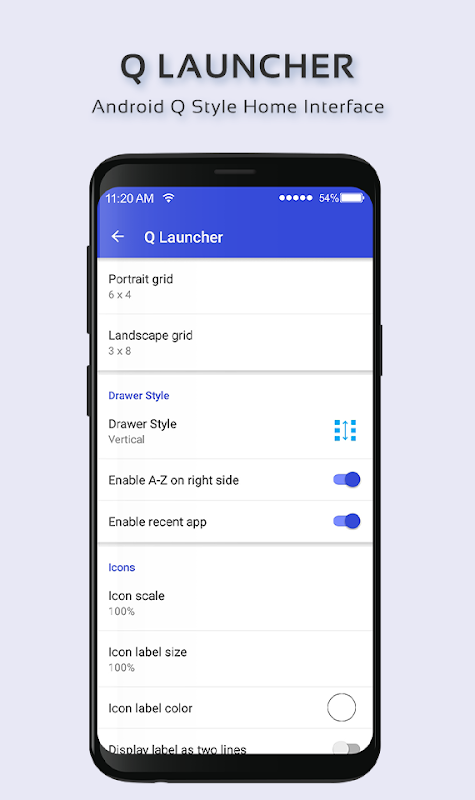 Q Launcher Theme For Q Theme, UI 10 customizable home screen layout: you can pick your favorite home screen layout grid and customize home screen icons and fonts to match your personal style.