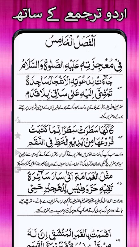 Marcador y favoritos: marque sus secciones o versos favoritos de Qasida Burda Sharif para un acceso rápido y una navegación sencilla. Crea una colección personalizada de tus partes más preciadas de este poema atemporal.
