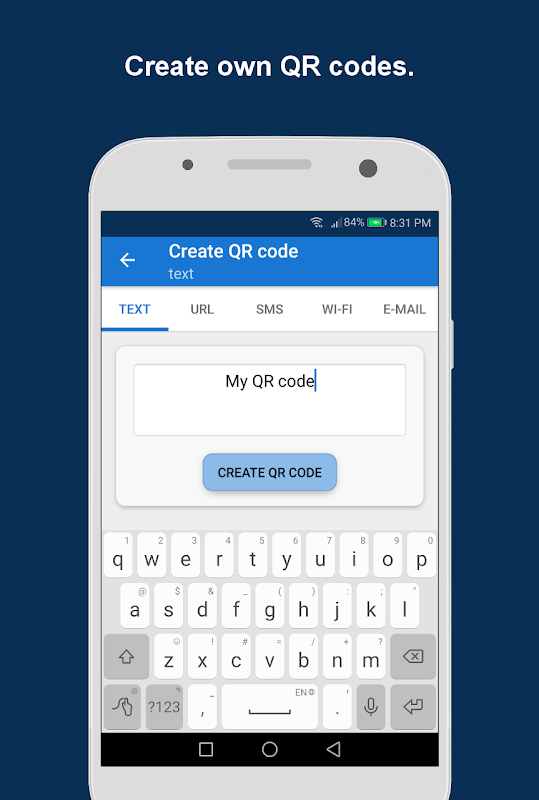 Genere código QR, guárdelo y compártalo a través de correo electrónico, sms, WhatsApp, Facebook, Twitter y más.