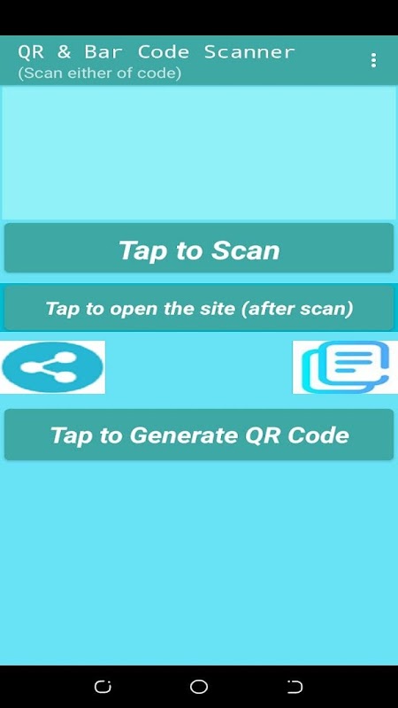 Este escáner de códigos de barras y códigos QR puede escanear y leer todos los códigos QR y códigos de barras, y mostrará los resultados, puede copiar los resultados o puede abrirlos directamente en el navegador simplemente haciendo clic en el primer botón y el segundo botón para copiar los mismos resultados y compartir si necesario.