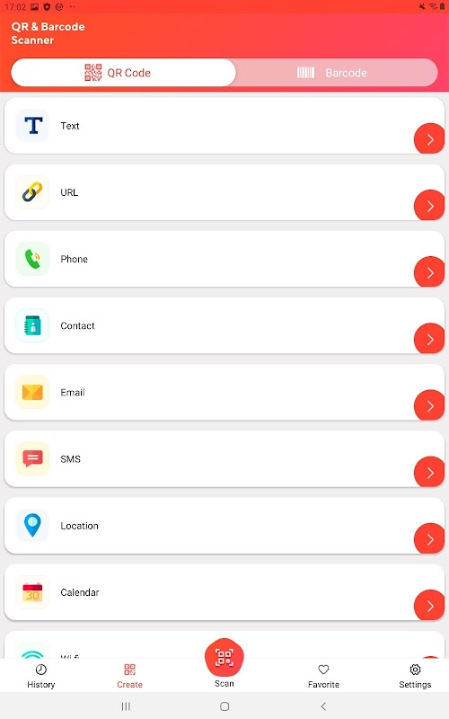 ¡Puedes crear un código QR eligiendo entre las opciones sin salir de la aplicación! Genere códigos QR para un contacto en su libreta de direcciones, número de teléfono, URL, dirección de correo electrónico, ubicación geográfica, texto libre, un marcador o evento en el calendario.