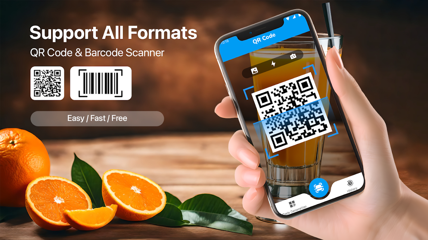 ¡Aplicación sencilla de escáner de códigos QR y códigos de barras para todos los dispositivos Android! Admite todo tipo de códigos QR y códigos de barras, ¡completamente gratis! 👍