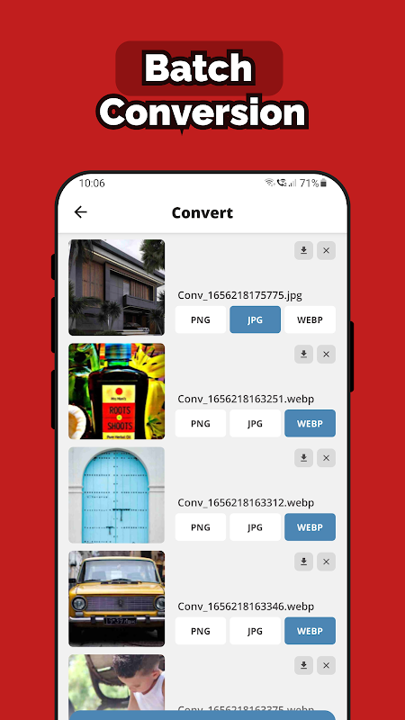 4. Toque el botón CONVERTIR y convierta las imágenes al formato requerido.