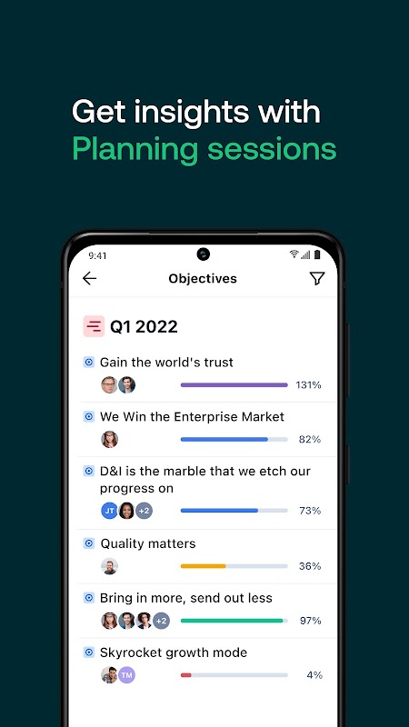 Administre objetivos, realice un seguimiento de los resultados clave y realice un seguimiento del progreso de la empresa.