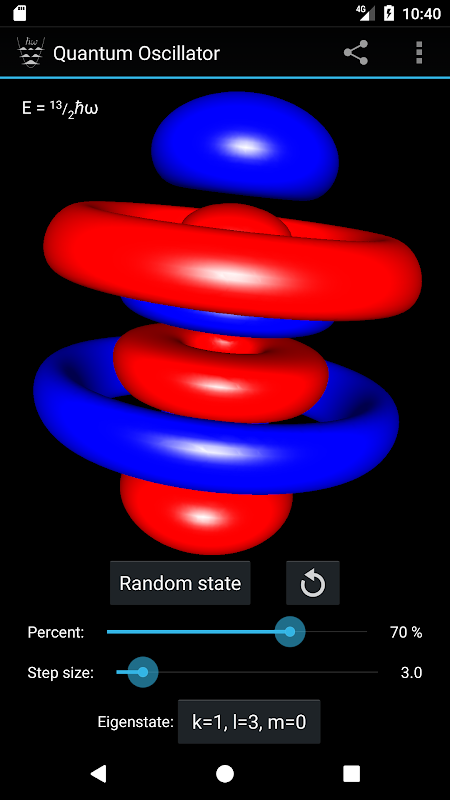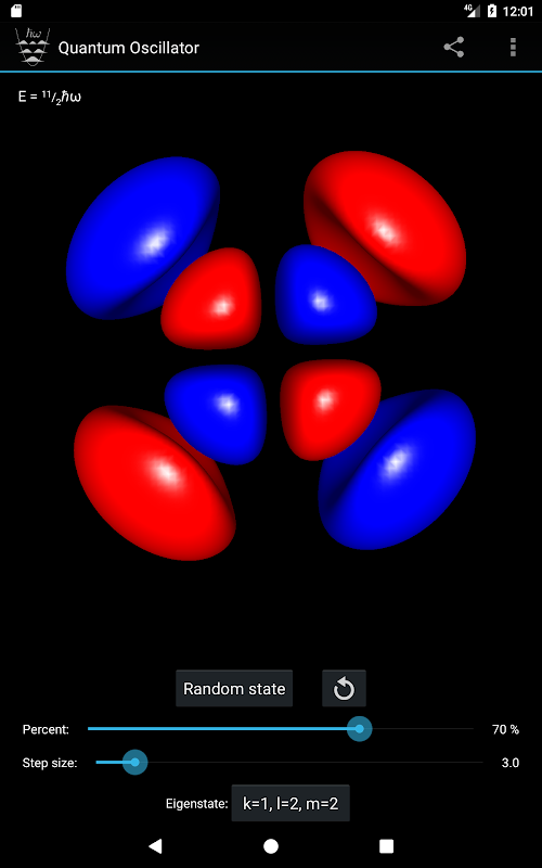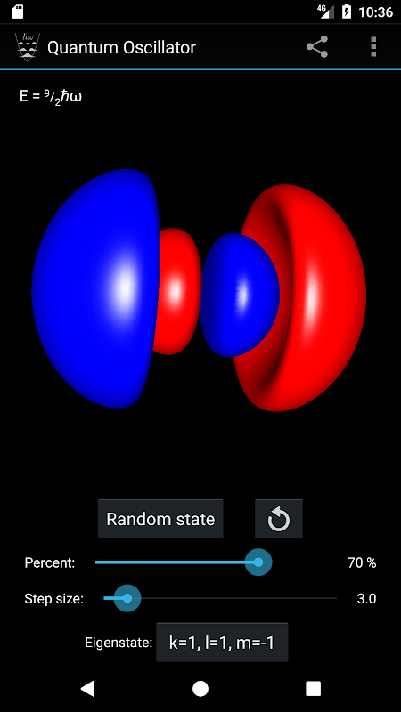 - Seleccionar el eigenstate especificando los números cuánticos k, l y m, o recoger al azar.
