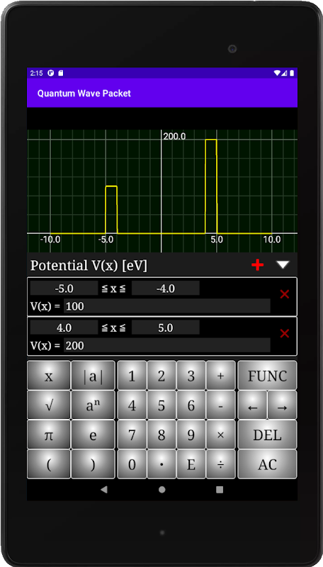 In this app, you can freely define initial conditions of wave packet and potential energy and observe how electron moves under the conditions. Let's observe how electron passes through potential barrier, and so on!