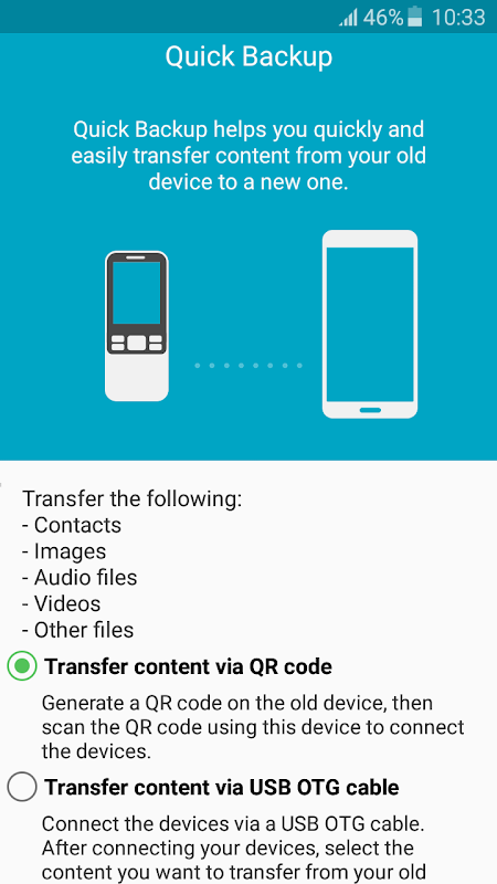 Quick Backup application for seamless transfer from feature to android phone