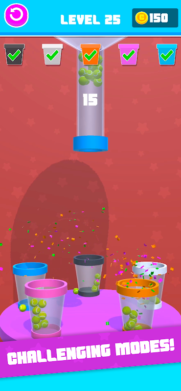 ¡Toca y suelta pelotas para llenar los vasos!