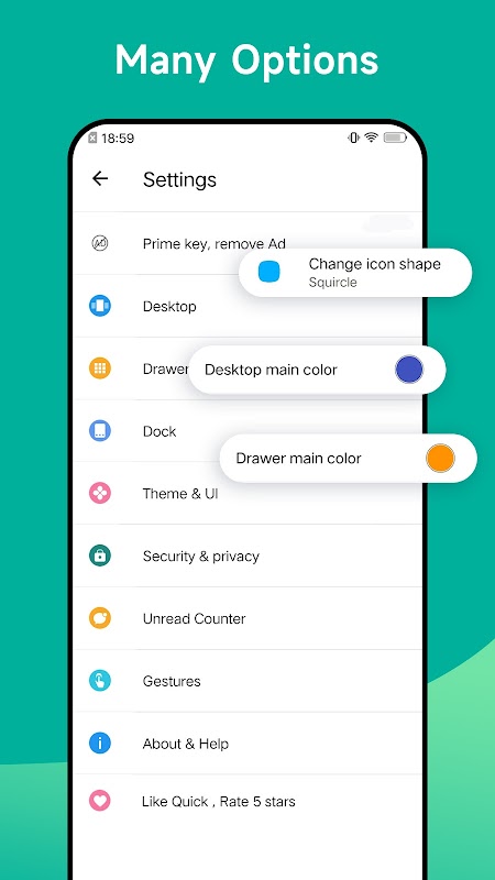 + Quick Launcher es compatible con casi todos los paquetes de iconos de terceros creados para launchers de terceros.