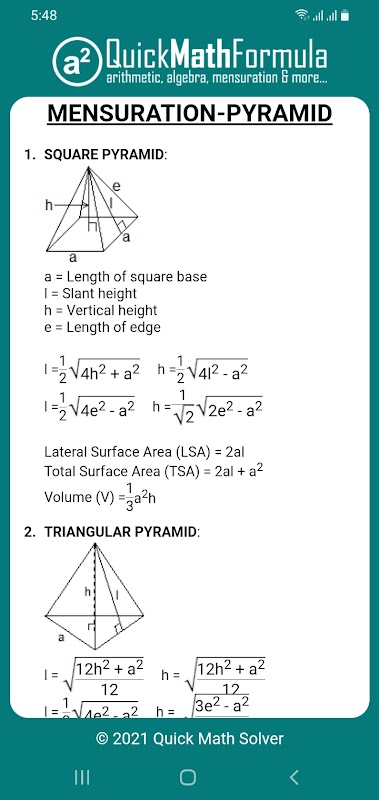 Quick Math Formula es una aplicación de Android para la fórmula matemática.