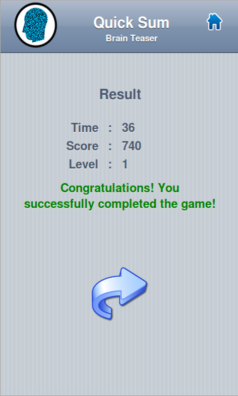 Quick Sum Brain Teaser is a simple number based brain game. The game helps you to sharpen your attention, reasoning, problem solving skills etc.