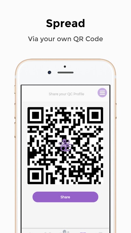 • Share your business or your personal profile with others, no more multiple logos, just one smart QC code to represent them all