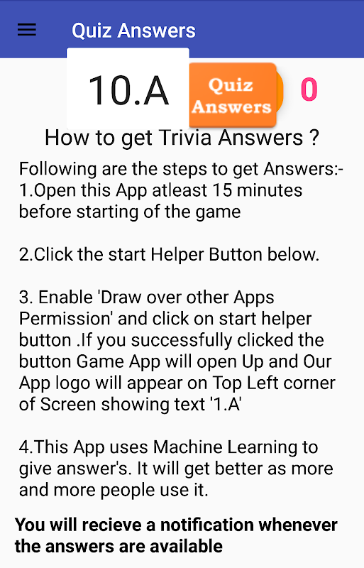 Quiz Answers App uses Artificial Intelligence to give you answers of difficult questions.