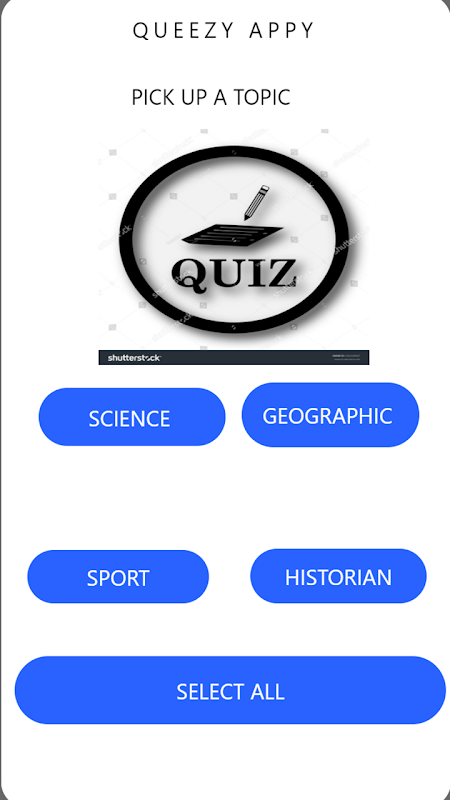 Esta aplicación es una aplicación de prueba en la que hay muchos temas, puedes elegir uno de ellos o seleccionar todos los temas y al final de responder las preguntas obtendrás tu puntuación.