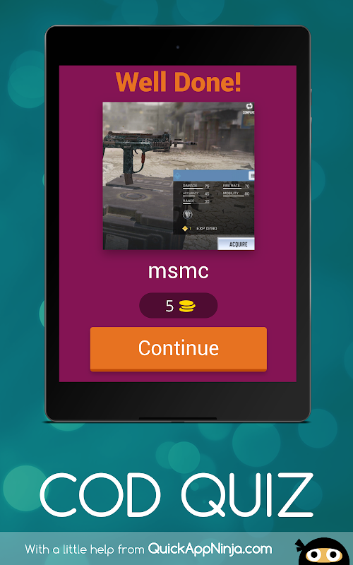 This is an app for Call of Duty Mobile™ fans to test their knowledge of the game; is not an official property of Activision©.