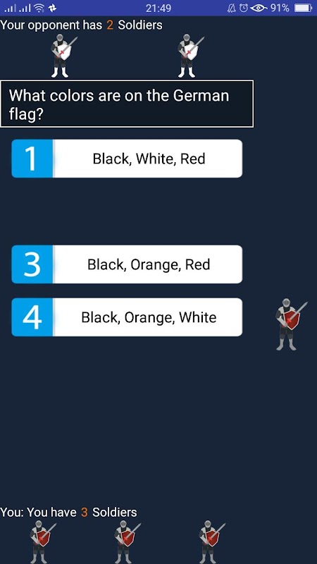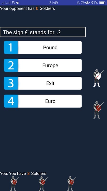 The first stage is the gathering of soldiers. Every correct answer gives you an extra soldier