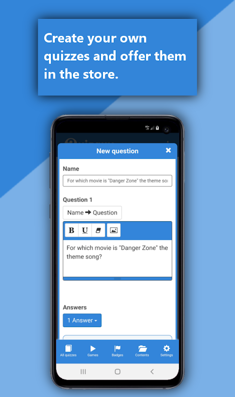 Download quizzes on countless topics. You can create your own quizzes and share them with others or offer them in the store.