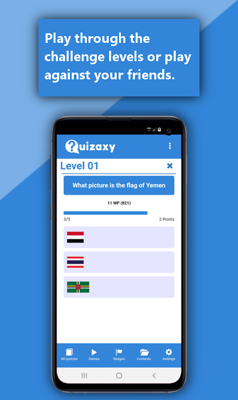 Quizaxy lets you play multiplayer quizzes against friends and strangers. Simply create quizzes and share the link with friends or invite them to the quiz in the app.