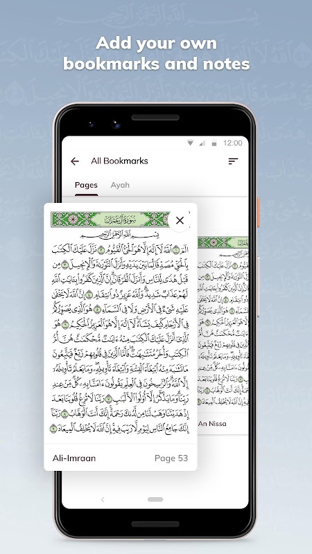 * Facebook and Email sharing function in order to share the Quran's beautiful words to your friends and family.