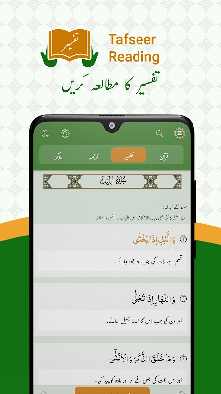 Aplicación fácil de usar que incluye las siguientes excelentes características: recitación del Corán, comentarios y traducción y traducción del Corán en urdu, hindi, kannada, persa, pashto y otros idiomas, modo nocturno, marcadores, notas y compartir. Con una interfaz atractiva.