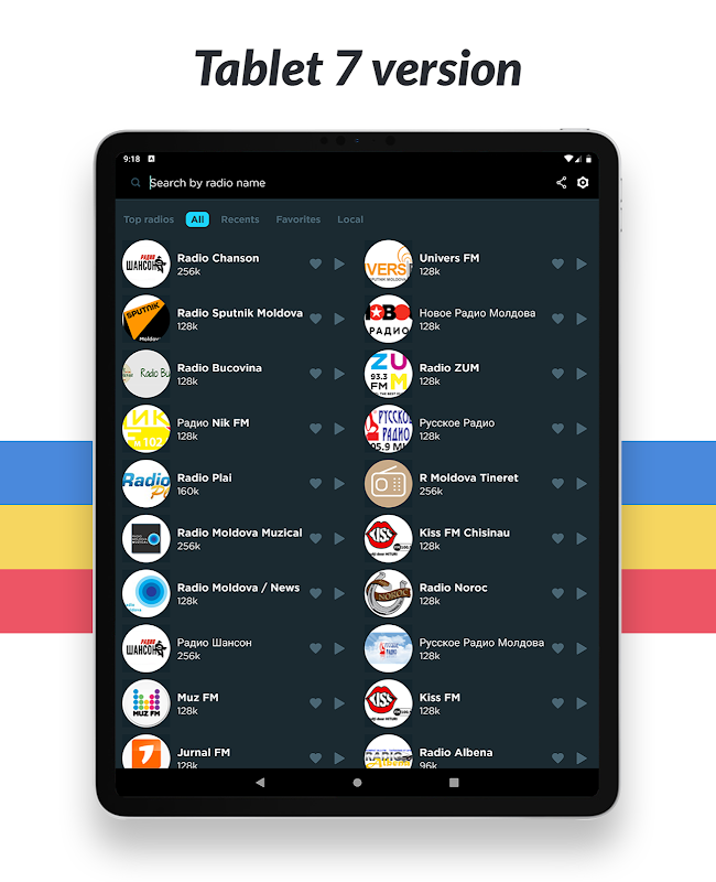 ¡Escucha todas tus estaciones de radio favoritas como Stundentus, ХHТ 101.7, Moldova 873, Kiss 100.9, Orhei 97.5, Diaspora Media, 91.1 Chisinau, PRO Dj, Chanson, Bucovina, ZUM, Retro, JCI Ungheni, Vocea Basarabiei, One y muchas más! Y no importa en qué ciudad o país te encuentres, ¡puedes escuchar tu estación de radio local favorita desde cualquier parte del mundo!