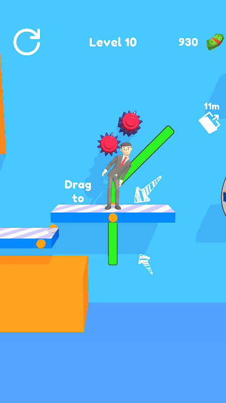 Avoid obstacles to stay on track. Try to keep your balance on the platforms, it will help you get to the end.