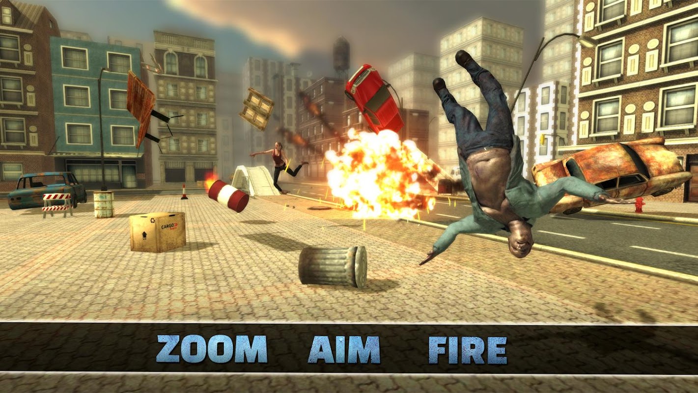 Armado con un rifle de francotirador, tu tarea es limpiar la ciudad de zombis de las hordas de muertos vivientes. Aprovecha tu entorno y utilízalo contra tus enemigos. Puede ser difícil golpear a los zombis que corren a velocidad turbo o se esconden detrás de un cartel de la calle, por lo que puede encontrar barriles y cajas explosivas útiles para destruir cualquier obstáculo.