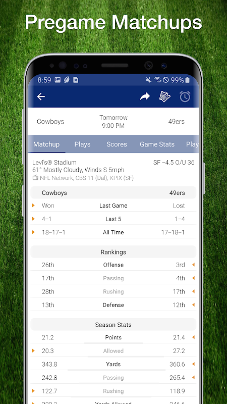 * Never miss a game! Set an alarm and be reminded to tune in.