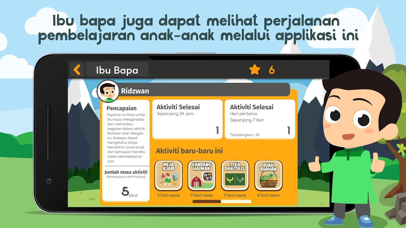 Hay dos módulos principales, a saber módulo módulos y juegos. Estos dos módulos que abarcan diversos aspectos de Jawi aprender por dónde empezar los niños se les da la oportunidad de Jawi, escribir, reconocer las extremidades y los animales y muchos más. Después de haber estudiado la ciencia, los niños pueden practicar el arte en las actividades de juego para aumentar el avanzado y competente en aprender Jawi.