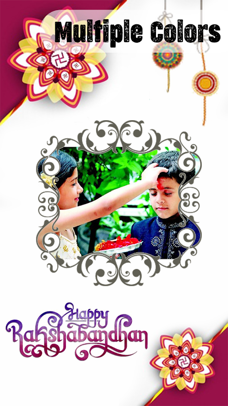 Make Rakhi photo cards with Raksha Bandhan PHOTO frames Editor and share your beautiful pictures. You can Also add Rakhi stickers on photos. Using this Rakhi Photo frames application you can decorate your photo, send gift, chocolate to your lovely brother or sweet sister.