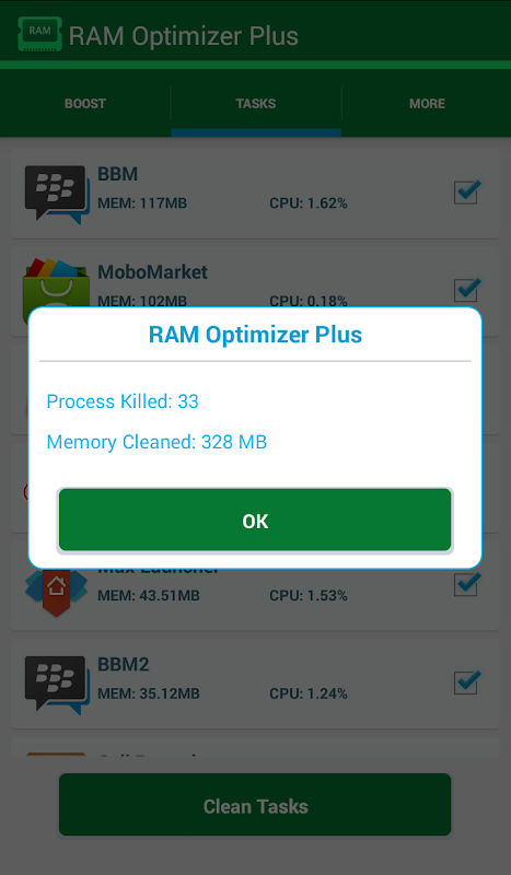 To kill running tasks unnecessary. RAM Optimizer Plus supported Using Advanced Monitoring System, in order to make your phone very fast.