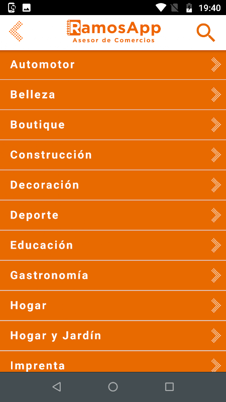 RamosApp es una aplicación organizada y ágil, permite al comerciante adherirse de forma online, ubicándolo por rubro y subrubro, posibilitando al cliente la visualización de su dirección, ubicación en mapa, interacción con sitios web, teléfonos, imágenes descriptivas y llamada directa.