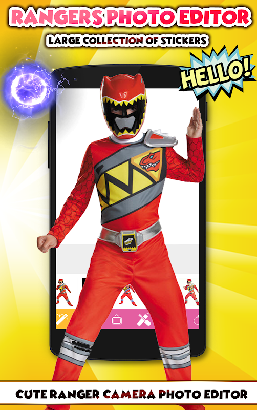 Rangers camera Photo Editor is a Camera application and new free power rangers photo editor for kids and those who want to be and look like samurai rangers superhero with costumes of ninja storm, face morph rangers will allow you to change your face and wear suits and costumes of Rangers zero to get their power and get a cosplay ranger style.