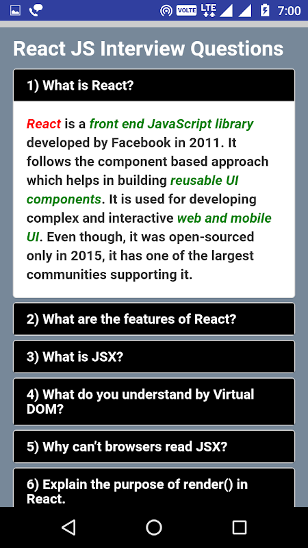 Información de React JS Interview Questions APK