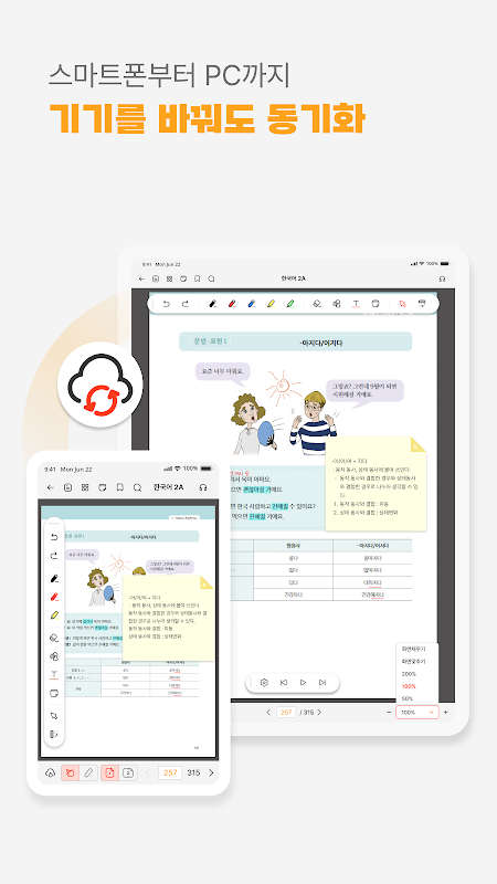 - Las anotaciones como notas, resaltadores y marcadores se pueden sincronizar y utilizar en otros dispositivos.